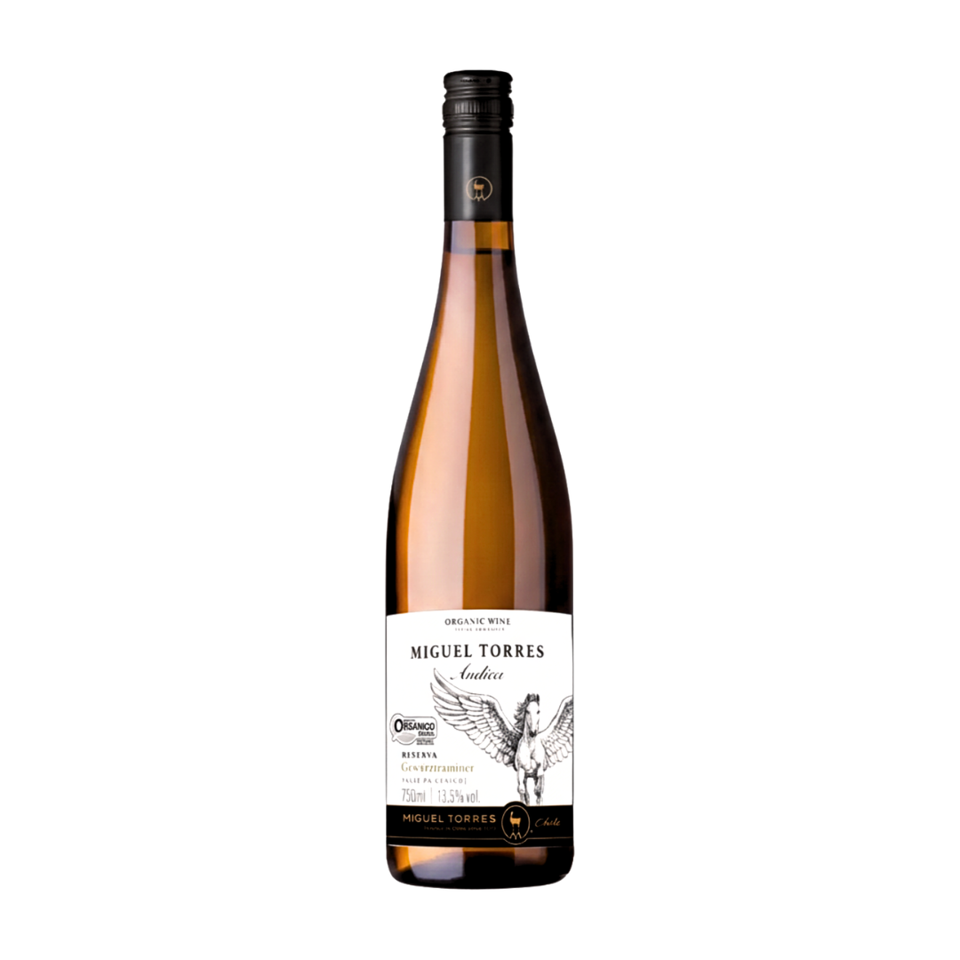O Miguel Torres Andica Gewürztraminer 2023 é um branco aromático chileno, bem no estilo fresco, perfumado, levemente off‑dry (um toquezinho de maciez), ótimo pra quem curte vinhos brancos aromáticos e diferentes.