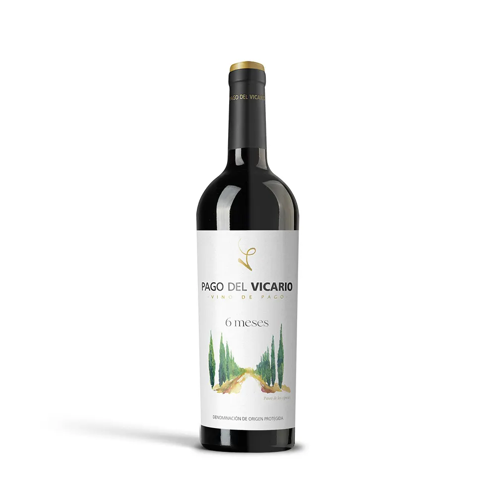 O Pago Del Vicario 06 Meses é um tinto seco espanhol, amadurecido por 6 meses em barrica, com corte de Tempranillo, Garnacha, Merlot e Petit Verdot. Tem estilo moderno, com boa fruta, madeira bem integrada, médio corpo e taninos macios, bem gastronômico.